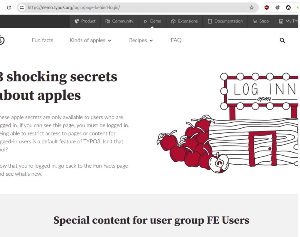 An important aspect of TYPO3 personalization is the ability to differentiate content based on user login status. For anonymous visitors: Display general information along with calls to action encouraging them to sign up or log in. Example: Visitors who aren't logged in see more general content but are prompted to subscribe or login to access premium features.